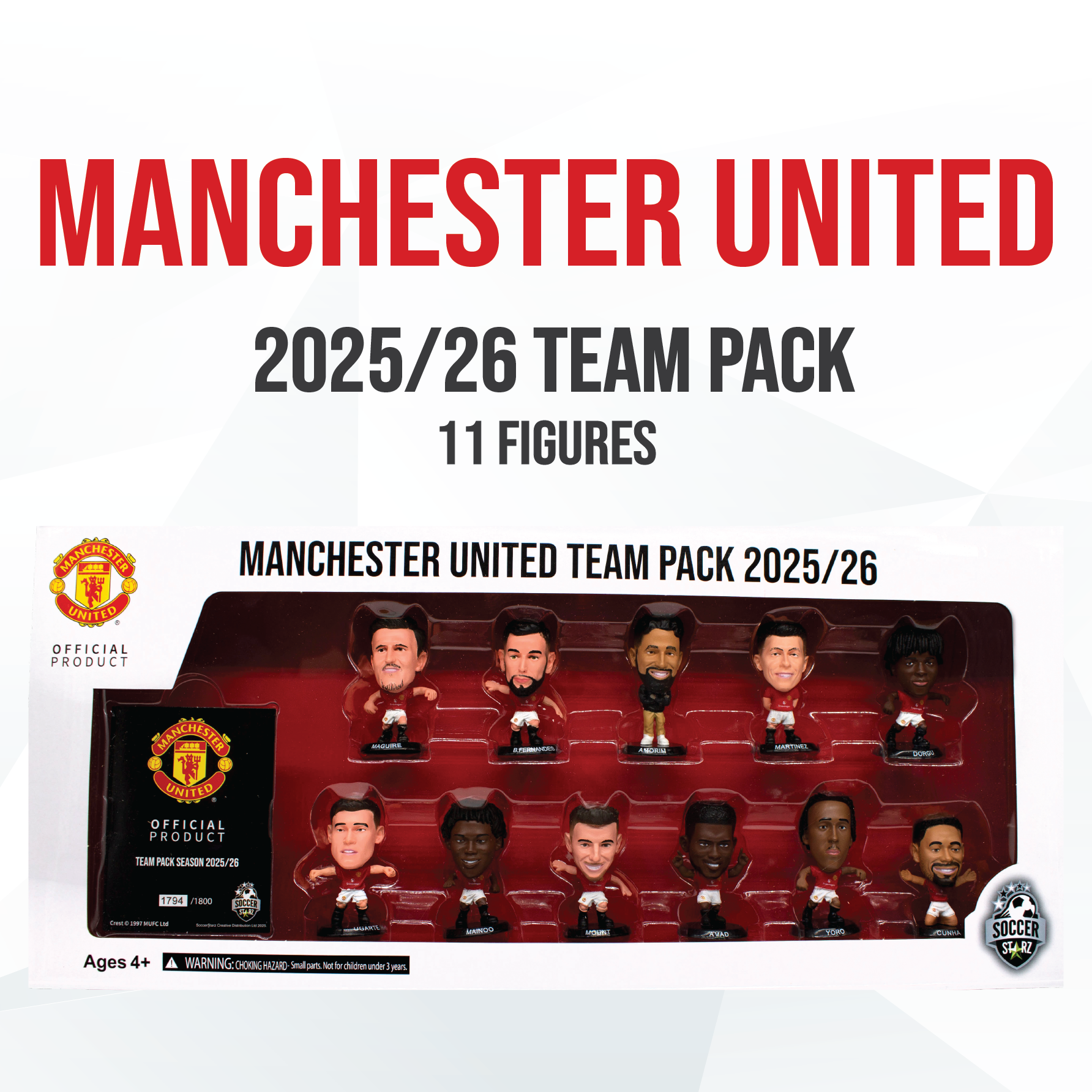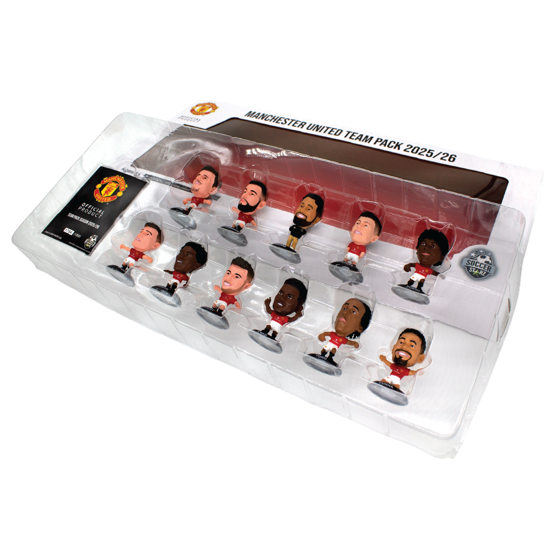 The Manchester United 2025/26 Team Pack features 11 SoccerStarz on exclusive black bases!