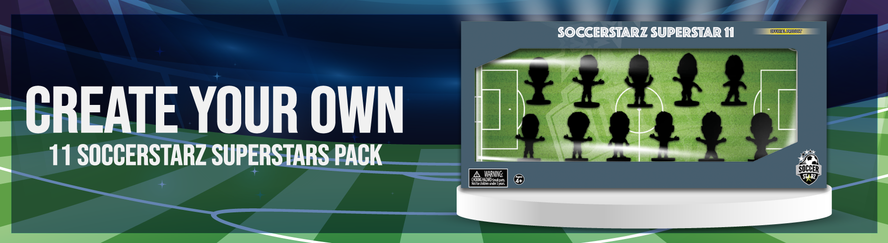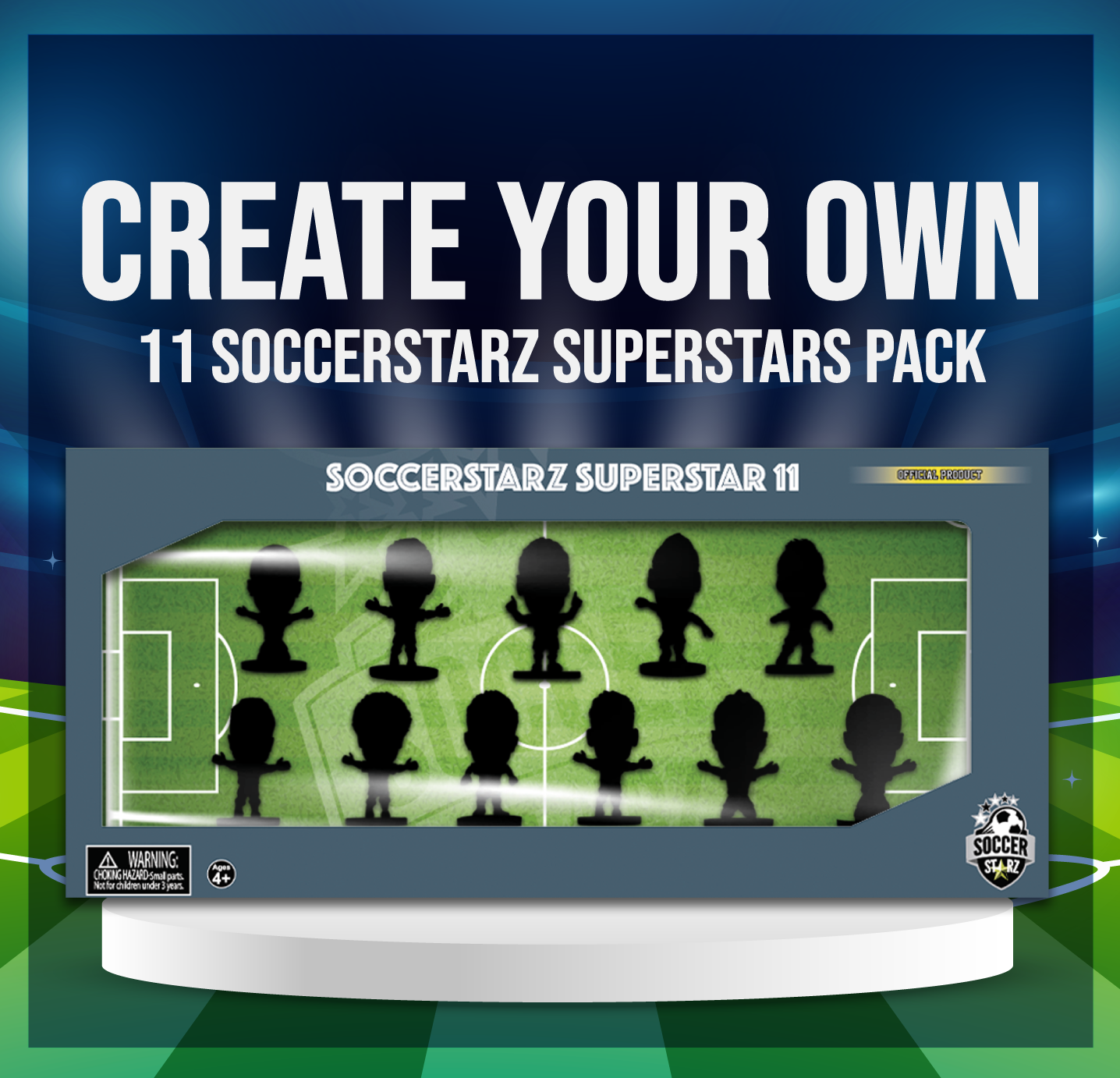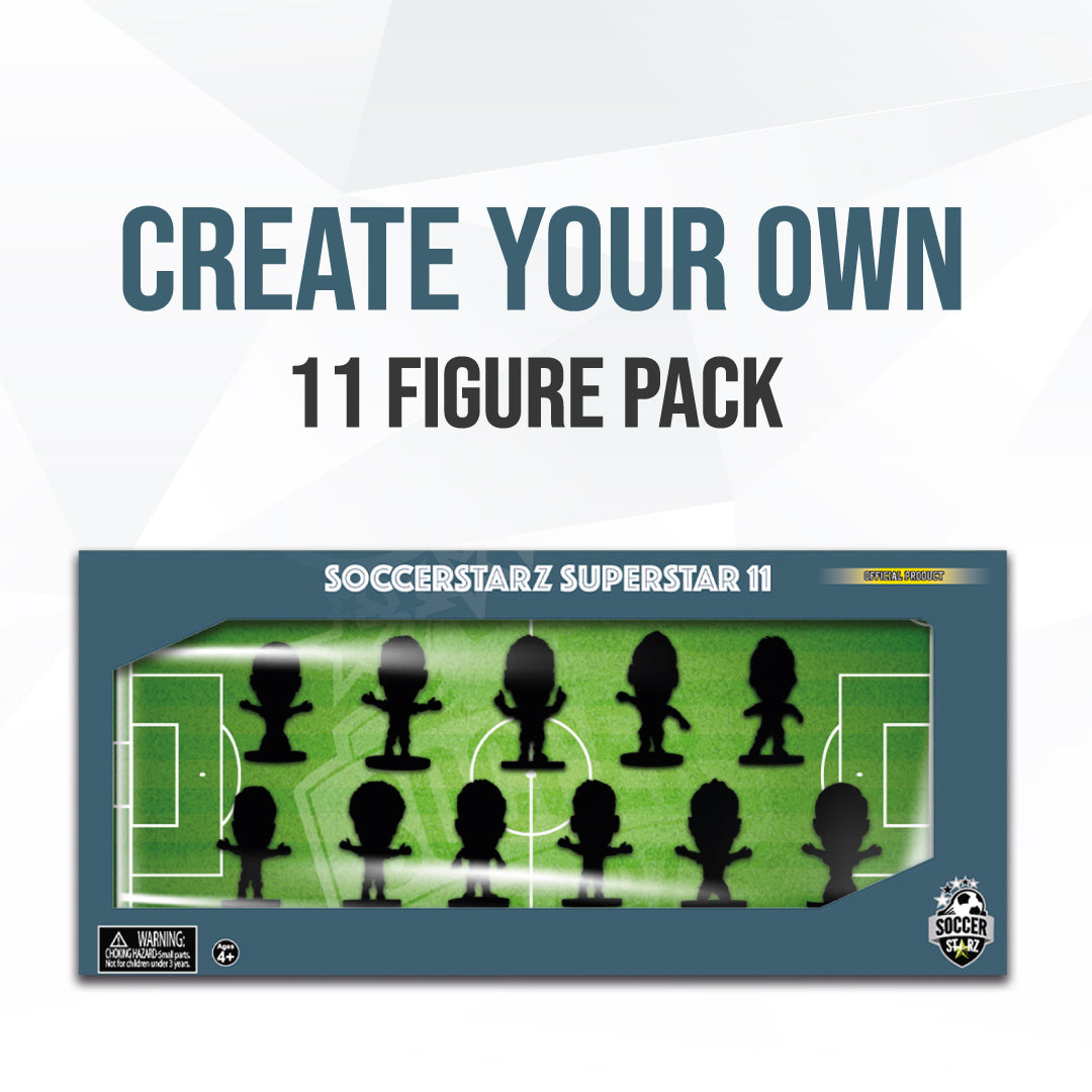 Choose a 11 SoccerStarz Create Your Own pack that you can fill with a selection of SoccerStarz figures of your choice. Whether you want to create a pack containing kits from this season, mix up home shirts or even create your own dream 11 aside team, the choice is yours!